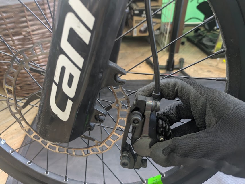 ですので、最初にブレーキキャリパーを外す必要があります。
