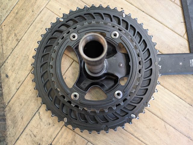 フロントシングルで運用する場合は、53Tなど奇数の歯を使うとまんべんなく摩耗させられます。
